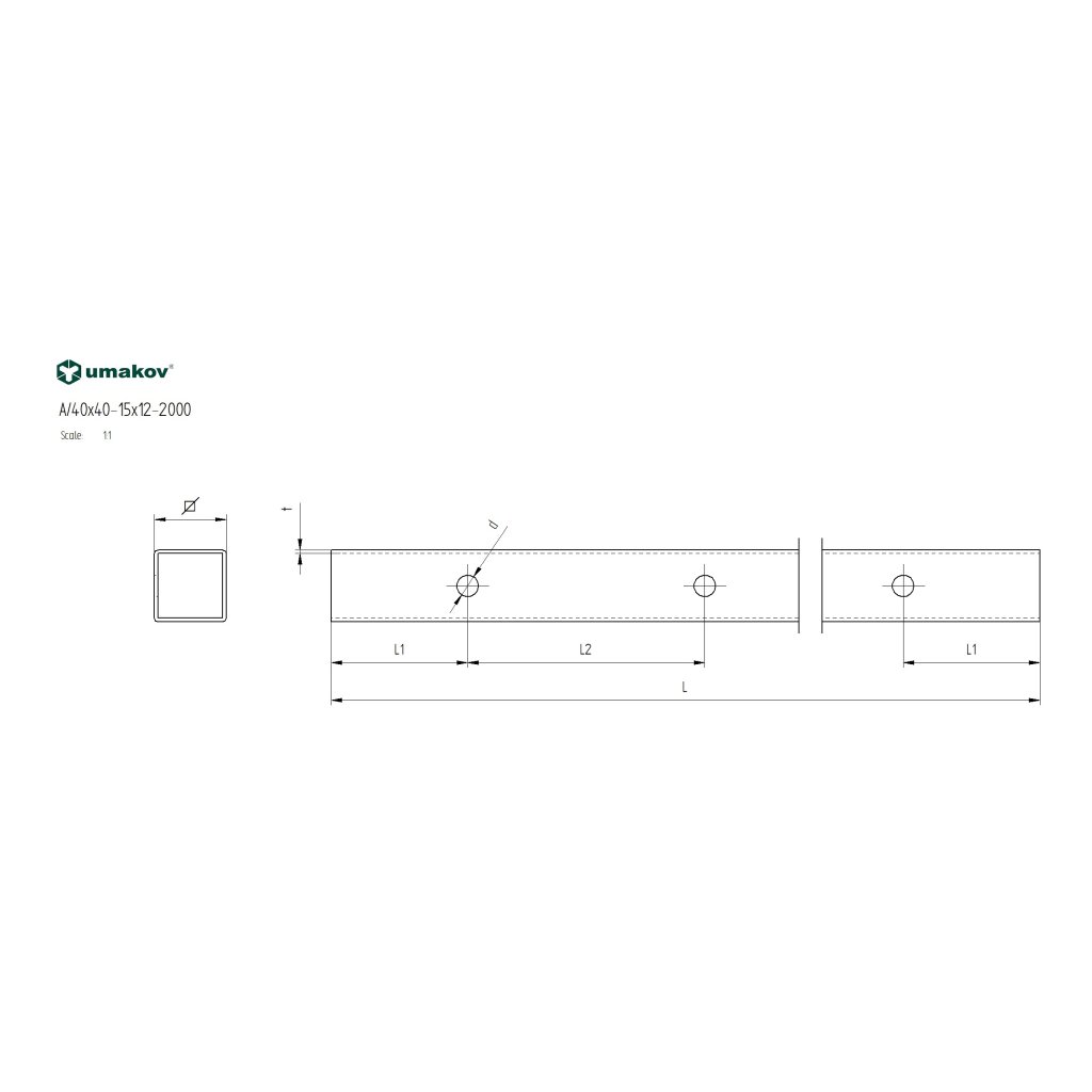 Profil AISI304, 40x40x2/15xd12,5/L1980