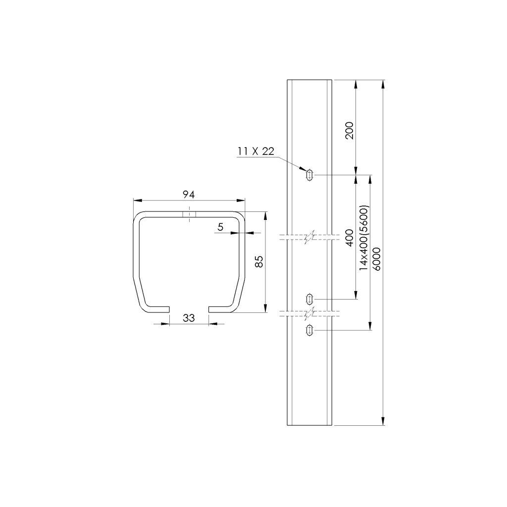 Profil vodiaci s otvormi Zn, 94x85x5mm, L6m