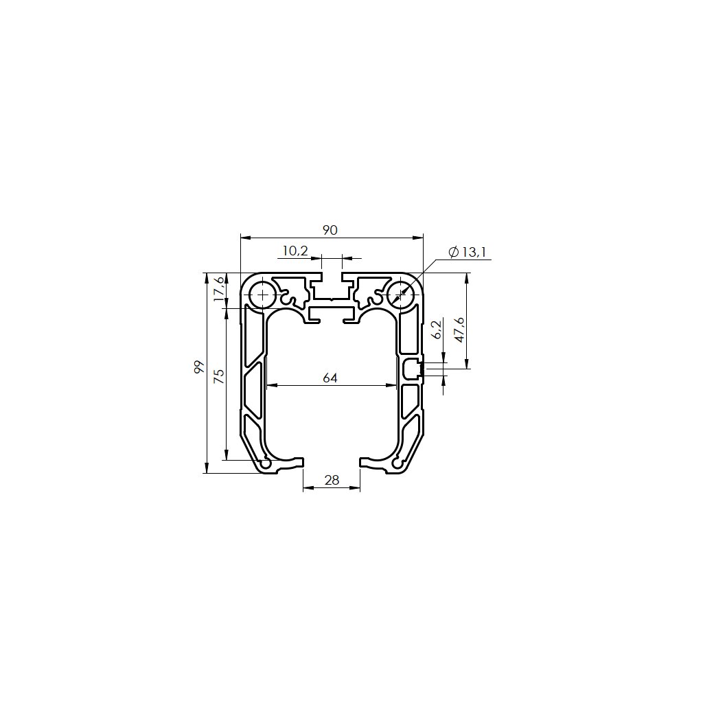 Profil vodiaci spodný AL, 90x99, L7m
