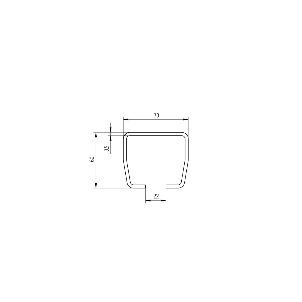 Profil vodiaci spodný Fe, 70x60x3,5mm, L3m