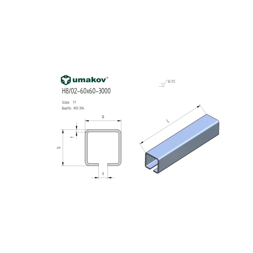 Profil vodiaci spodný INOX, 58x58x3mm, L3m