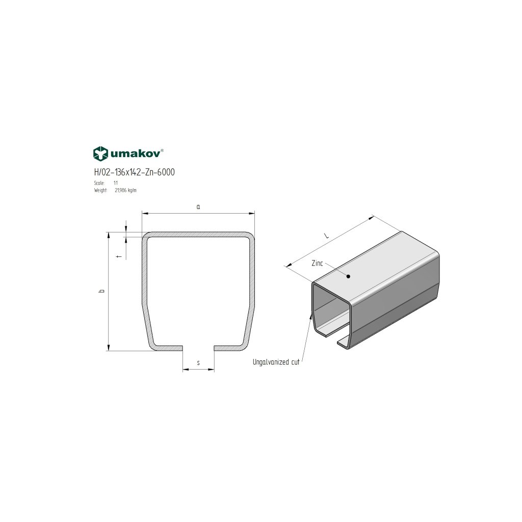 Profil vodiaci spodný Zn, 136x142x6mm, L6m