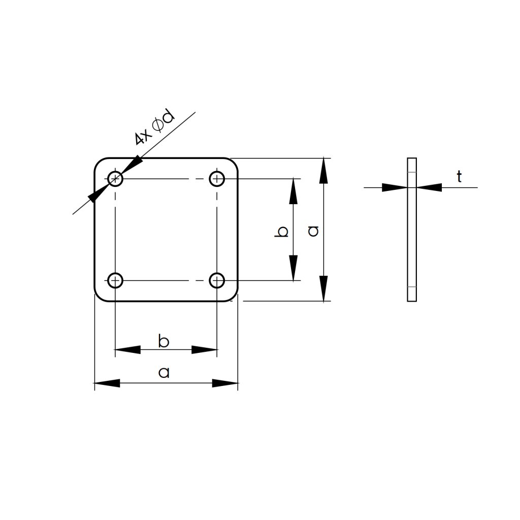 Rozeta kotviaca 100x100, t8mm, 4xd10mm