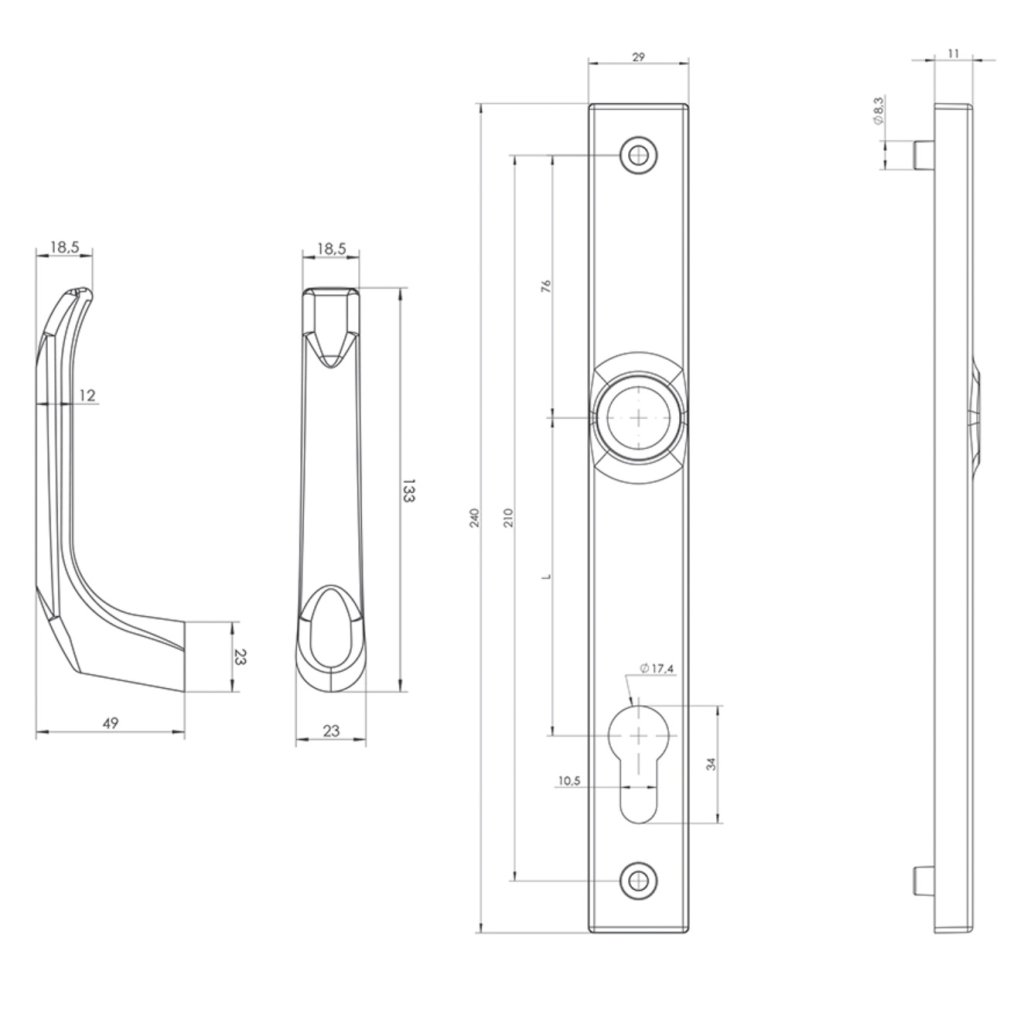 Sada kľučky - kľučka + kľučka so štítkom je rozmerovo prispôsobená kazetám našej výroby.