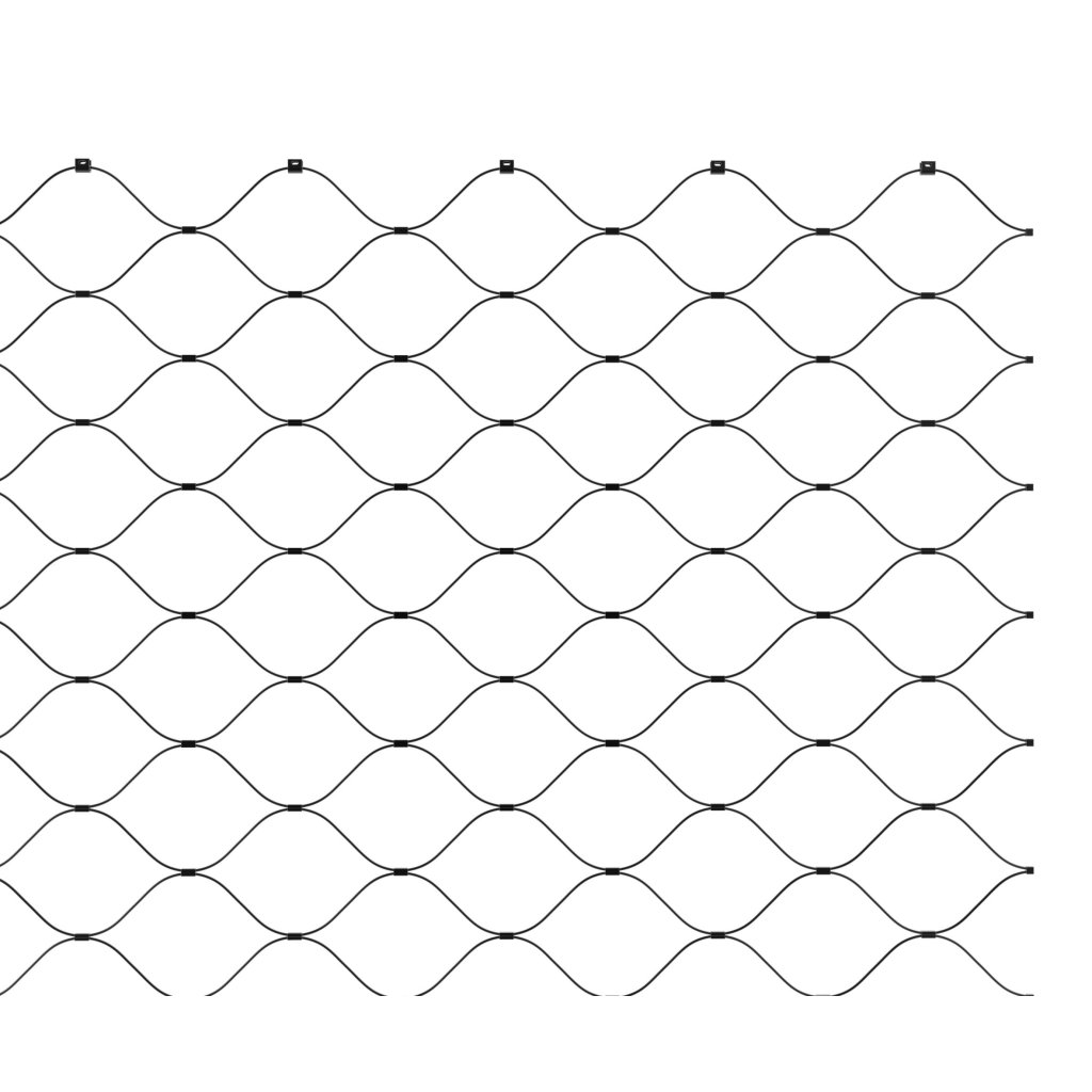 Sieťová výplň je konštrukčný prvok používaný na vyplnenie otvorov alebo medzier na zábradliach, plotoch, balkónoch, či terase. Táto výplň je vyrobená z oceľových lan, ktoré sú uchytené v ráme a má niekoľko výhod, vrátane toho, že umožňuje priechod svetla a vzduchu, minimalizuje vizuálne prekážky a zároveň poskytuje bezpečnosť a ochranu. Je tiež ľahká na údržbu a odolná voči poveternostným podmienkam a korózii. Sieťová výplň sa používa v rôznych aplikáciách, kde je potrebné vyplniť otvory alebo medzery a zabezpečiť bezpečné a estetické riešenie. Predava sa vo funkčnom rozmere "L1", nie v stiahnutom stave "L". Prepojenie laniek pri L1=12,5m je OTVORENOU SPOJKOU - FARBA ČIERNADodatočné parametre