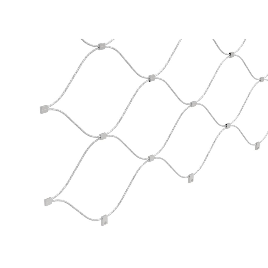 Sieťová výplň je konštrukčný prvok používaný na vyplnenie otvorov alebo medzier na zábradliach, plotoch, balkónoch, či terase. Táto výplň je vyrobená z oceľových lan, ktoré sú uchytené v ráme a má niekoľko výhod, vrátane toho, že umožňuje priechod svetla a vzduchu, minimalizuje vizuálne prekážky a zároveň poskytuje bezpečnosť a ochranu. Je tiež ľahká na údržbu a odolná voči poveternostným podmienkam a korózii. Sieťová výplň sa používa v rôznych aplikáciách, kde je potrebné vyplniť otvory alebo medzery a zabezpečiť bezpečné a estetické riešenie. Predáva sa v stiahnutom stave a preto na dosiahnutie požadovanej dĺžky ( s okom 70x120mm) je potrebné objednať o 18% dlhšiu sieť. Prepojenie laniek pri L=100m je OTVORENOU SPOJKOU.Dodatočné parametre