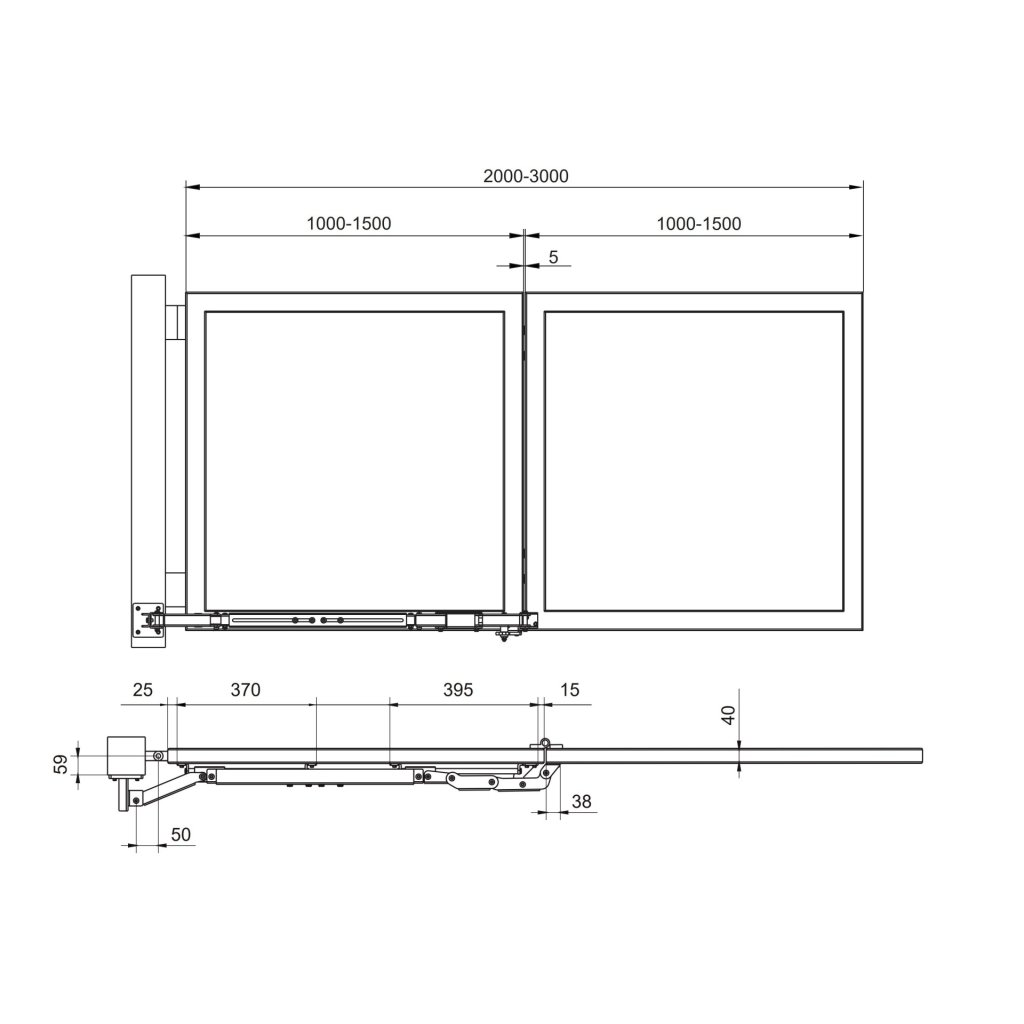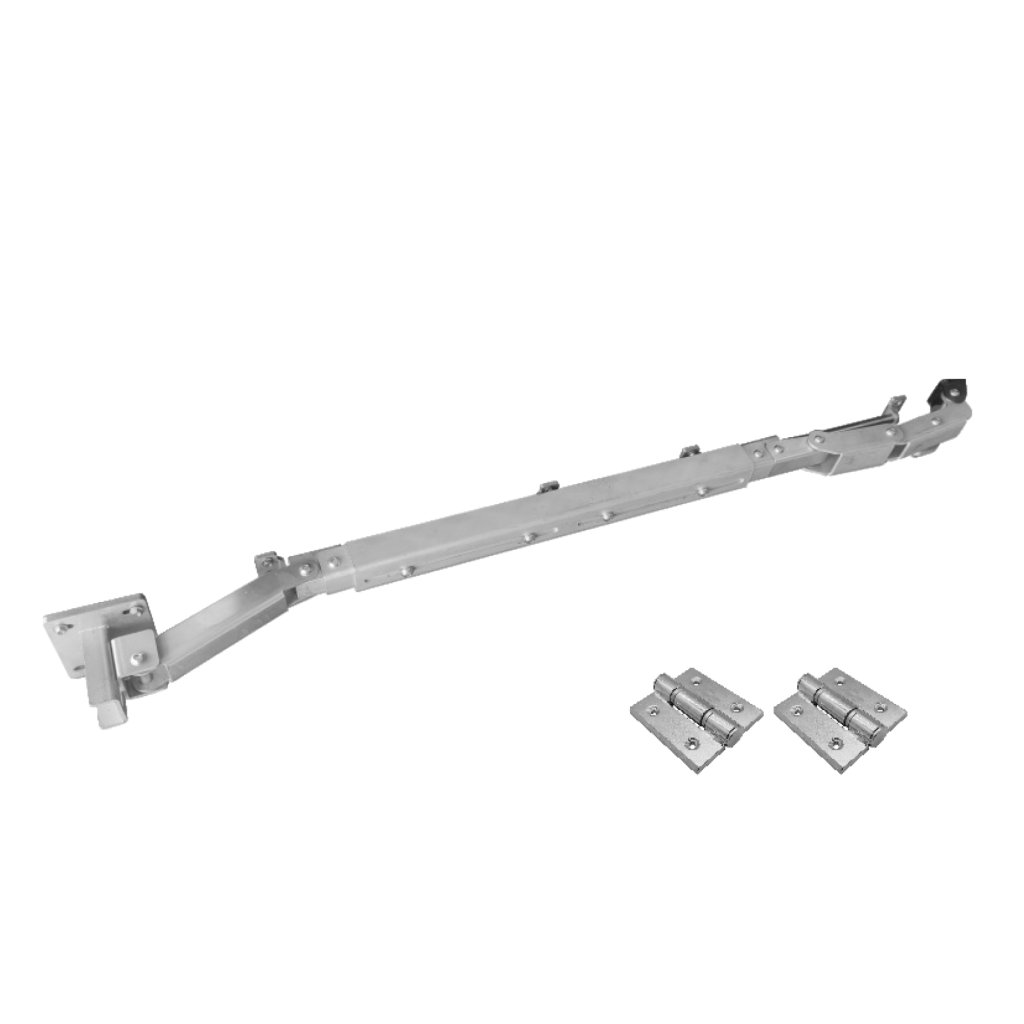 Kompletná zostava mechanizmu pre krídlové brány. Tento systém, pri správnej montáži, zabezpečí sklopenie krídla brány, čím sa zmenší dĺžka krídla pri otvorení. Vhodné pre krídlové brány s obmedzeným priestorom pri otvorení, alebo pri veľkom stúpaní terénu. Konštrukciu rámu brány je potrebné prispôsobiť podľa inštrukcií. Zostava obsahuje diely pre jedno krídlo - ľavé. Pri dvojkrídlovej bráne je potrebné zakúpiť ľavý + pravý kus. Mechanizmus je vhodný pre celkovú dĺžku krídla od 2m do 3m.Dodatočné parametre