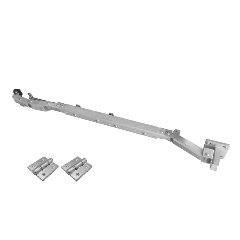 Kompletná zostava mechanizmu pre krídlové brány. Tento systém, pri správnej montáži, zabezpečí sklopenie krídla brány, čím sa zmenší dĺžka krídla pri otvorení. Vhodné pre krídlové brány s obmedzeným priestorom pri otvorení, alebo pri veľkom stúpaní terénu. Konštrukciu rámu brány je potrebné prispôsobiť podľa inštrukcií. Zostava obsahuje diely pre jedno krídlo - pravé. Pri dvojkrídlovej bráne je potrebné zakúpiť ľavý + pravý kus. Mechanizmus je vhodný pre celkovú dĺžku krídla od 2m do 3m.Dodatočné parametre