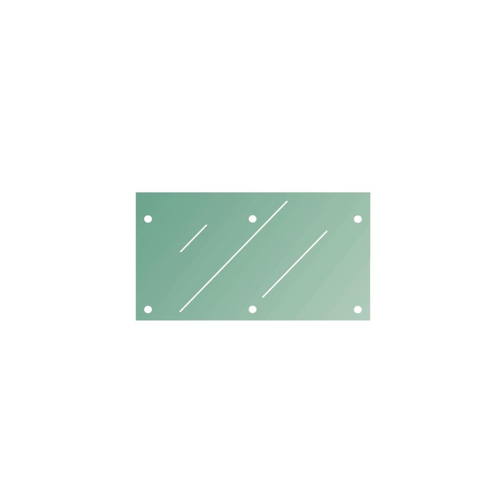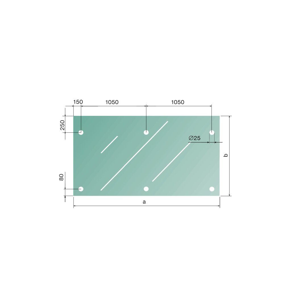 Sklo s otvormi, číre kalené, lepené VSG/ESG, zrazené a leštené hrany.Dodatočné parametre