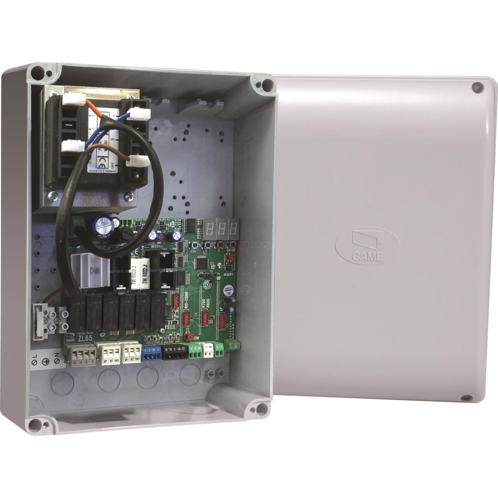 Skrinka s elektronikou CAME pre dvojkrídlovú bránu. Napájanie 230V. Elektronika má rozšírené funkcie. Rozdiel oproti ZA-3N - elektronika má funkciu spomalenie v koncových polohách.Dodatočné parametre