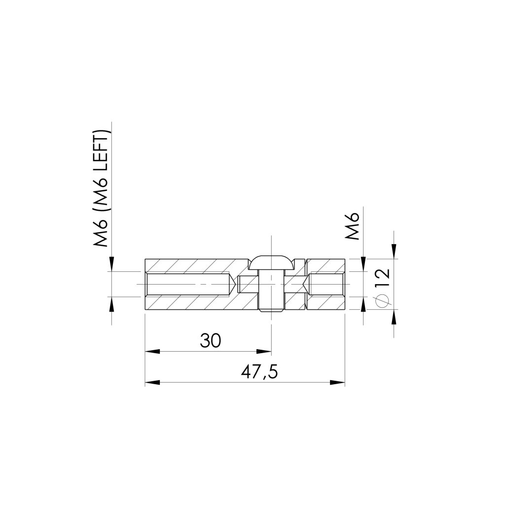 Materiál: Nerez AISI 316, Povrchová úprava: Brus, Výplň: Lanko, D: 12, d2: 6,5, h: 6, M: 6