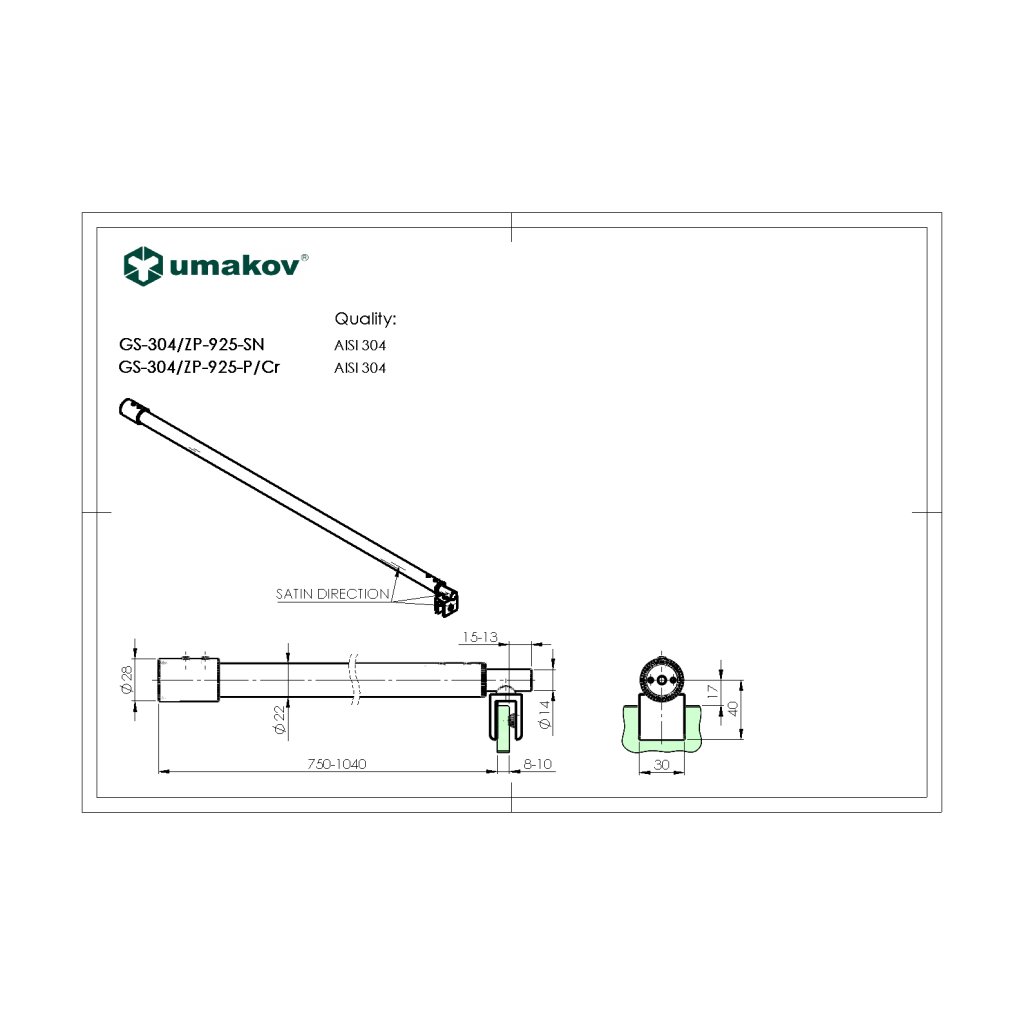 Stabilizačná tyč sklo-stena, D22mm, L=750-1040