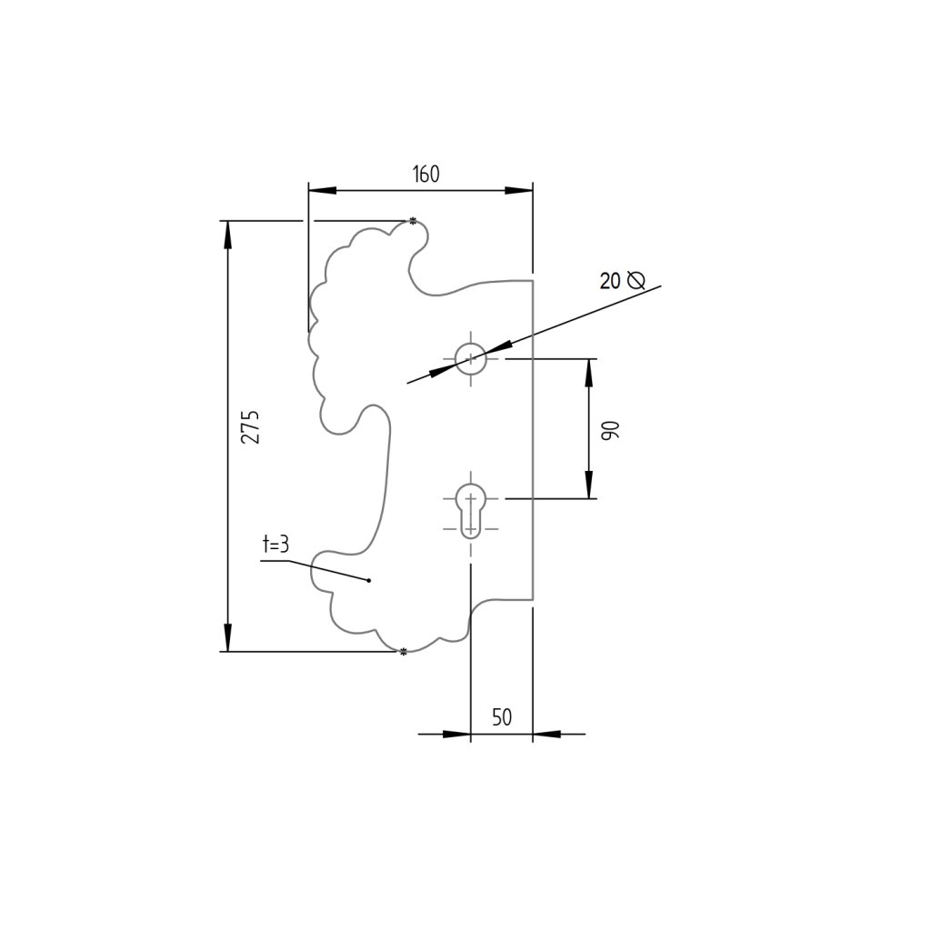 Štítok bránový zdobený Ľ 275x160, t3, C90, D22mm