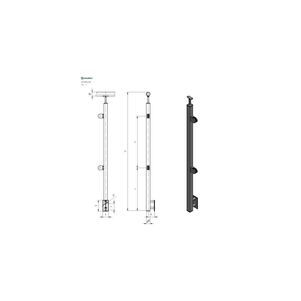 Stĺpik, bočné kotvenie - pravý AISI304, 40x40x2/2x