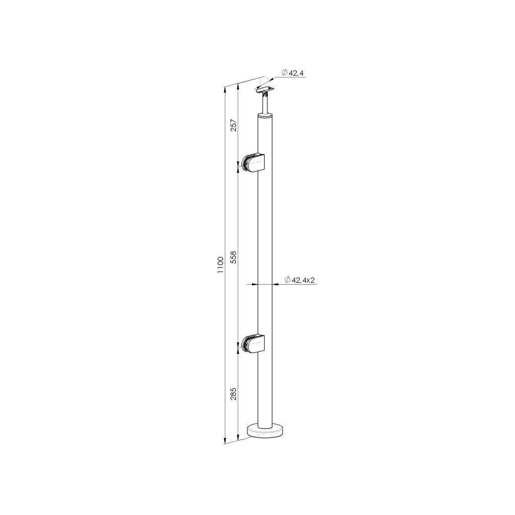 Stĺpik, vrchné kotvenie - ľavý - na schody AISI304