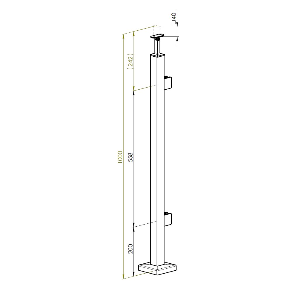 Stĺpik, vrchné kotvenie -pravý AISI304, 40x40x2/2x