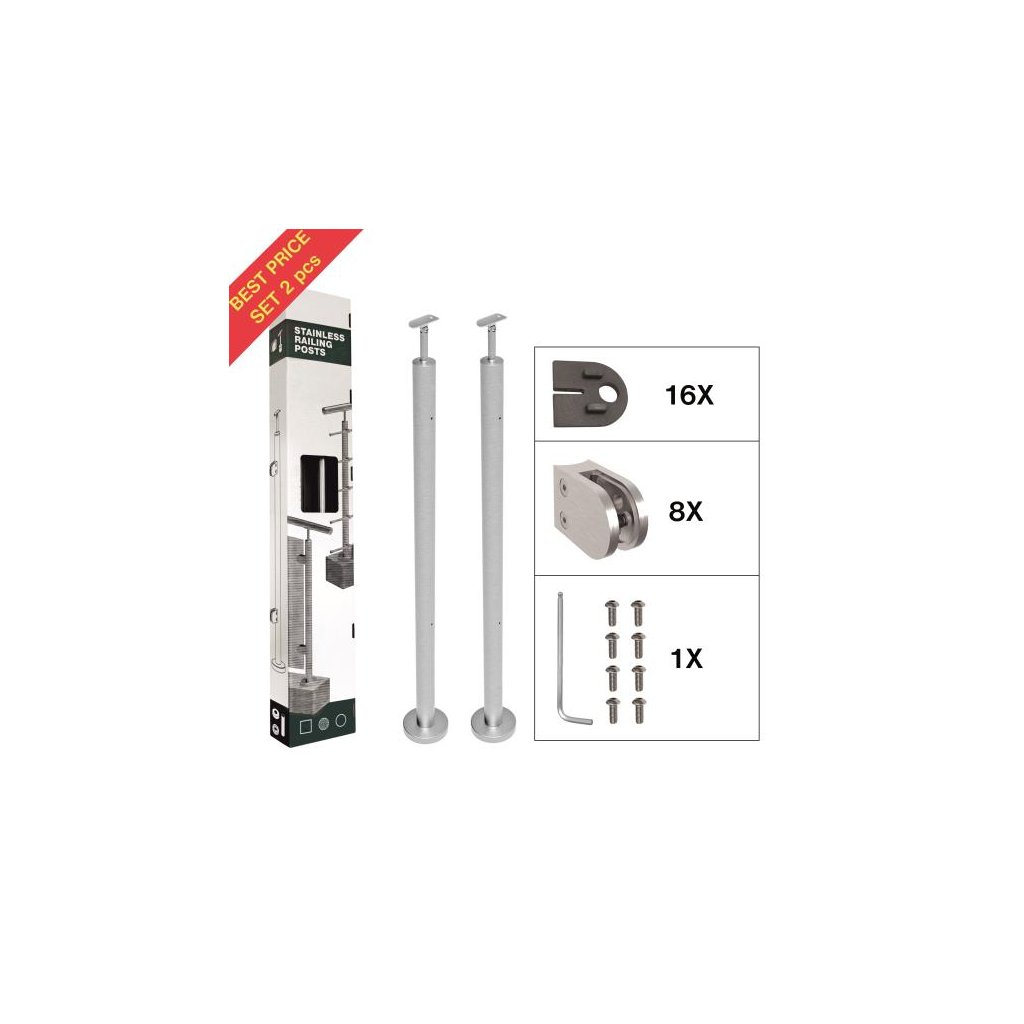 Nerezový stĺpik D42,4 mm pre madlo D42,4mm. Vrchné kotvenie, výplň na sklo. Určené pre rovné zábradlie výšky 100 cm, pre montáž s max. prepadom do 12 m. Možnosť nastavenia sklonu výplne a madla. Balené po 2 ks s demontovanými držiakmi výplne.Dodatočné parametre