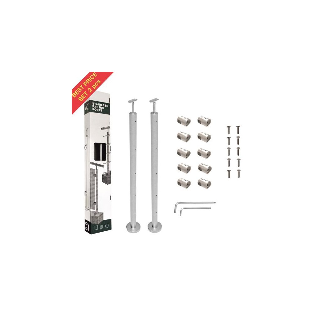 Nerezový stĺpik D42,4 mm pre madlo D42,4mm. Vrchné kotvenie, horizontálna výplň 5 x d12 mm. Určené pre schodiskové zábradlie výšky 100 cm, pre montáž s max. prepadom do 12 m. Možnosť nastavenia sklonu výplne a madla. Balené po 2 ks s demontovanými držiakmi výplne.Dodatočné parametre