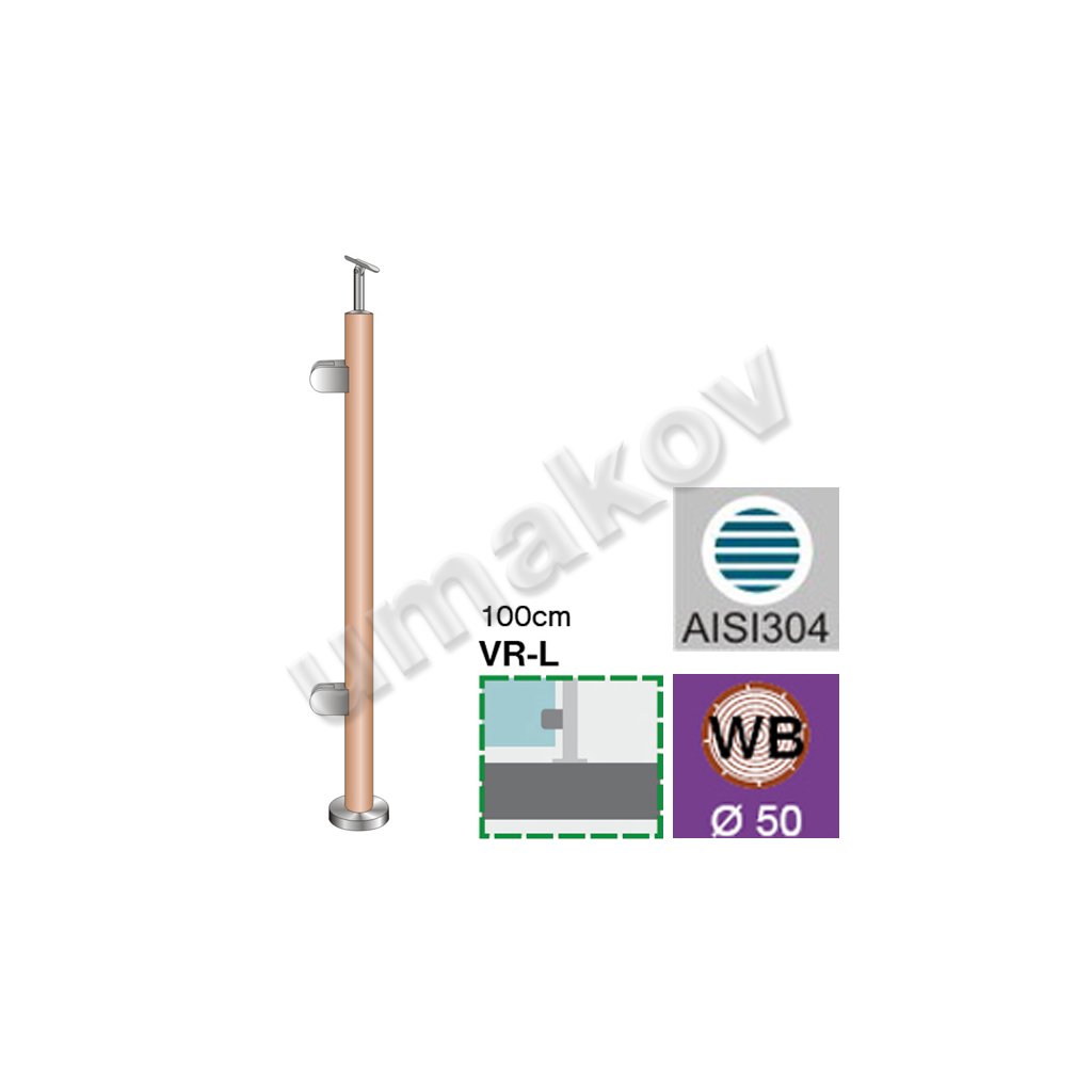 Stĺpik BUK, vrchné kotvenie - ľavý AISI304+BEECH,