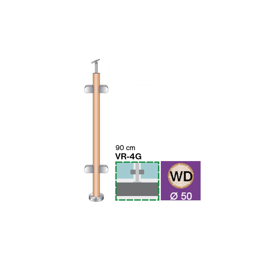 Stĺpik DUB (OAK) D42,4mm, 4xdržiak, v=90cm, VK-rov