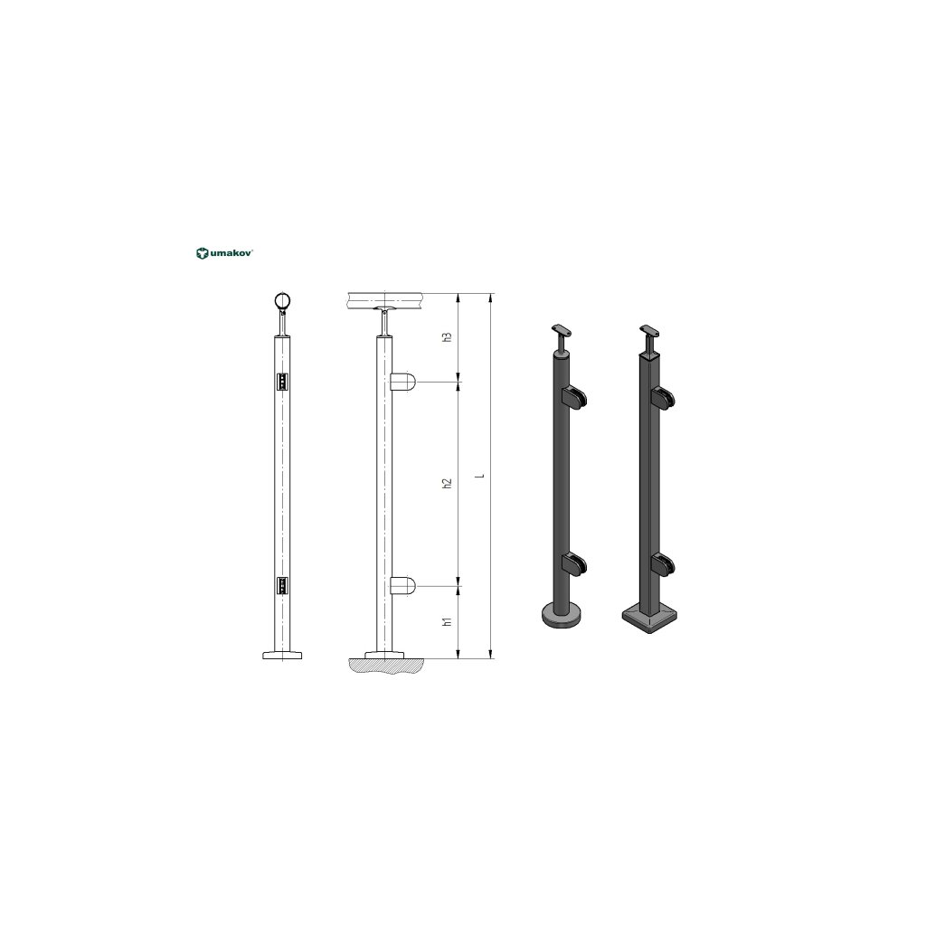 Stĺpik DUB D42,4 - 2xdržiak , v=100cm, VK-rovné