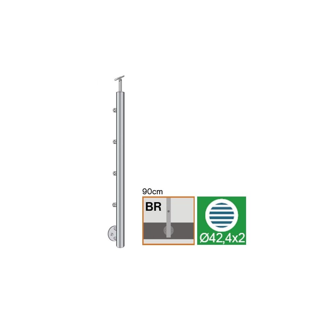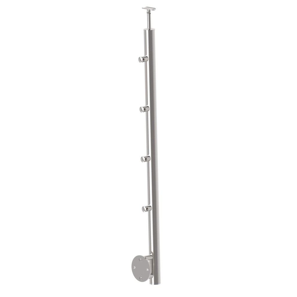 Nerezový stĺpik D42,4 mm pre madlo D42,4 mm, bočné kotvenie. Horizontálna výplň 4 x d12 mm. Určené pre rovné zábradlie výšky 90 cm, pre montáž s max. prepadom do 3 m. Možnosť nastavenia sklonu výplne a madla.Dodatočné parametre