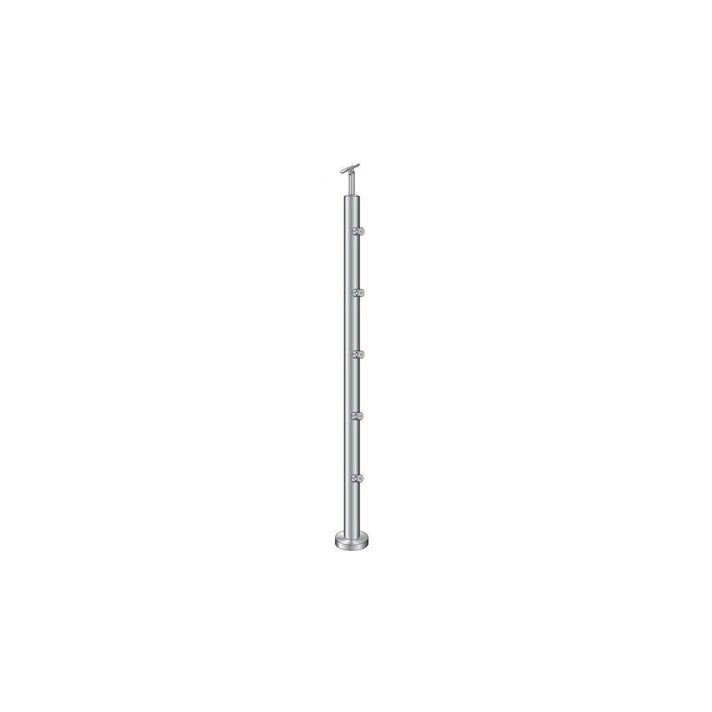 Nerezový stĺpik D42,4 mm pre madlo D42,4mm. Vrchné kotvenie, horizontálna výplň 5 x d12 mm. Určené pre rovné zábradlie výšky 100 cm, pre montáž s max. prepadom do 12 m. Možnosť nastavenia sklonu výplne a madla.Dodatočné parametre