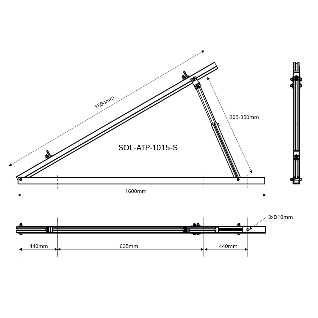 TMS 10°-15° nastaviteľný trojuholník. úchyt - set
