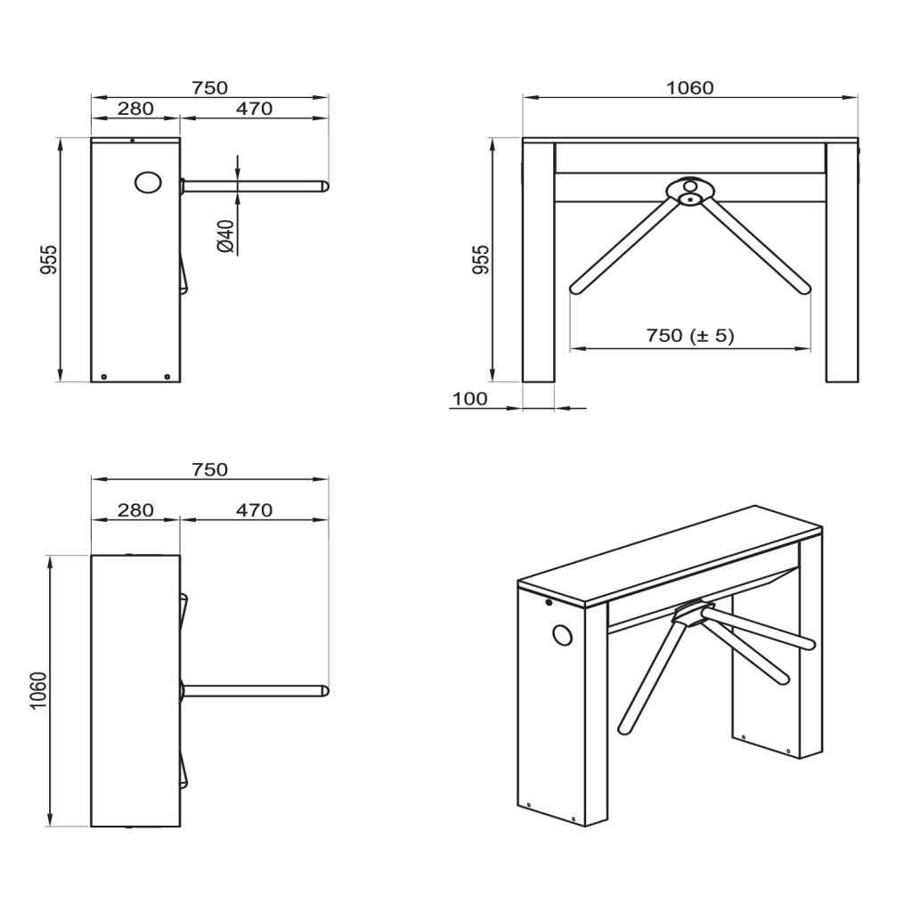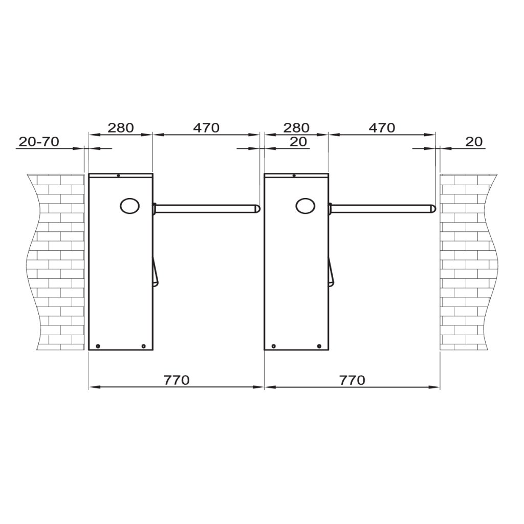 - Kapacita prechodu: Približne 25-46 osôb za minútu pre jednostranný turniket (dvojnásobok pre obojstranný)