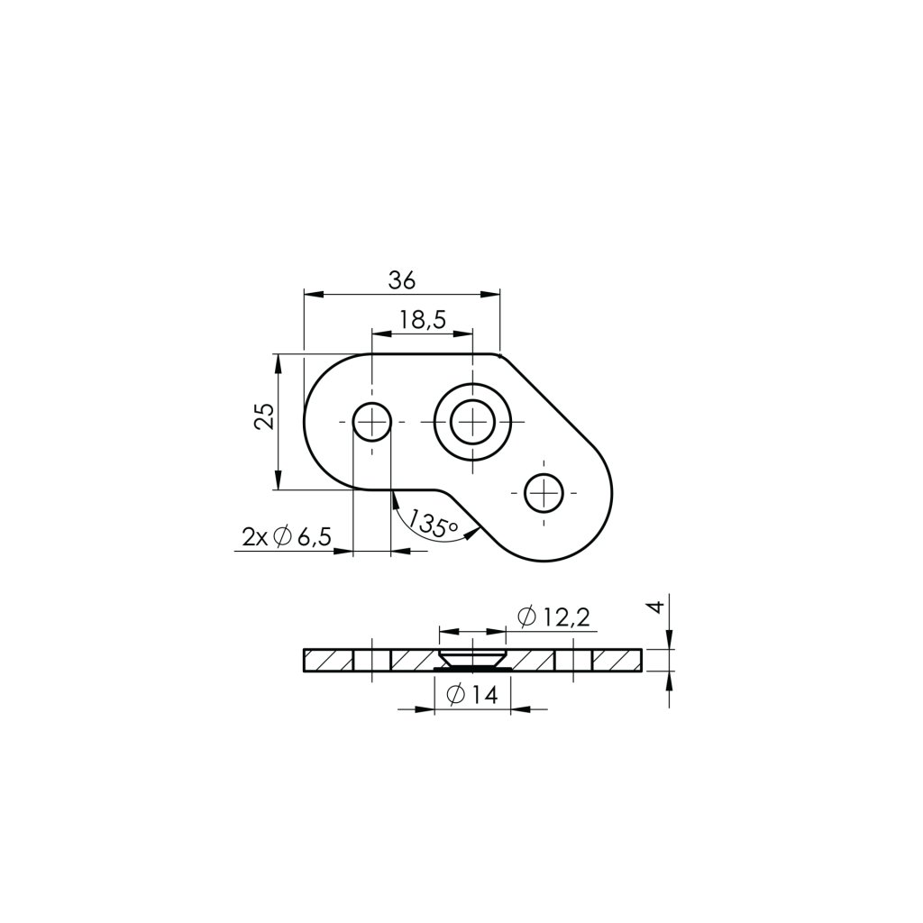 Vanička na držiak madla 135st°,AISI316