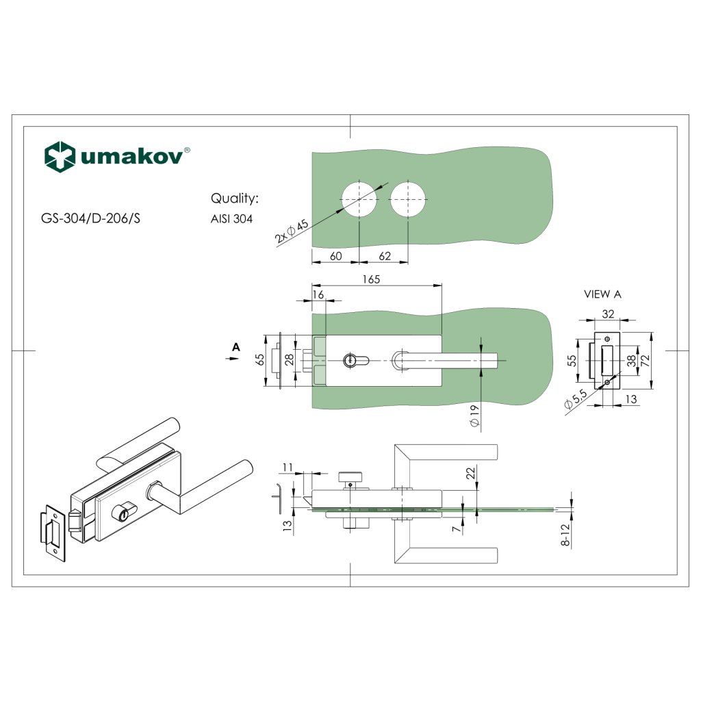 Zámka pre sklenené dvere BLACK PZ + zámok PZ