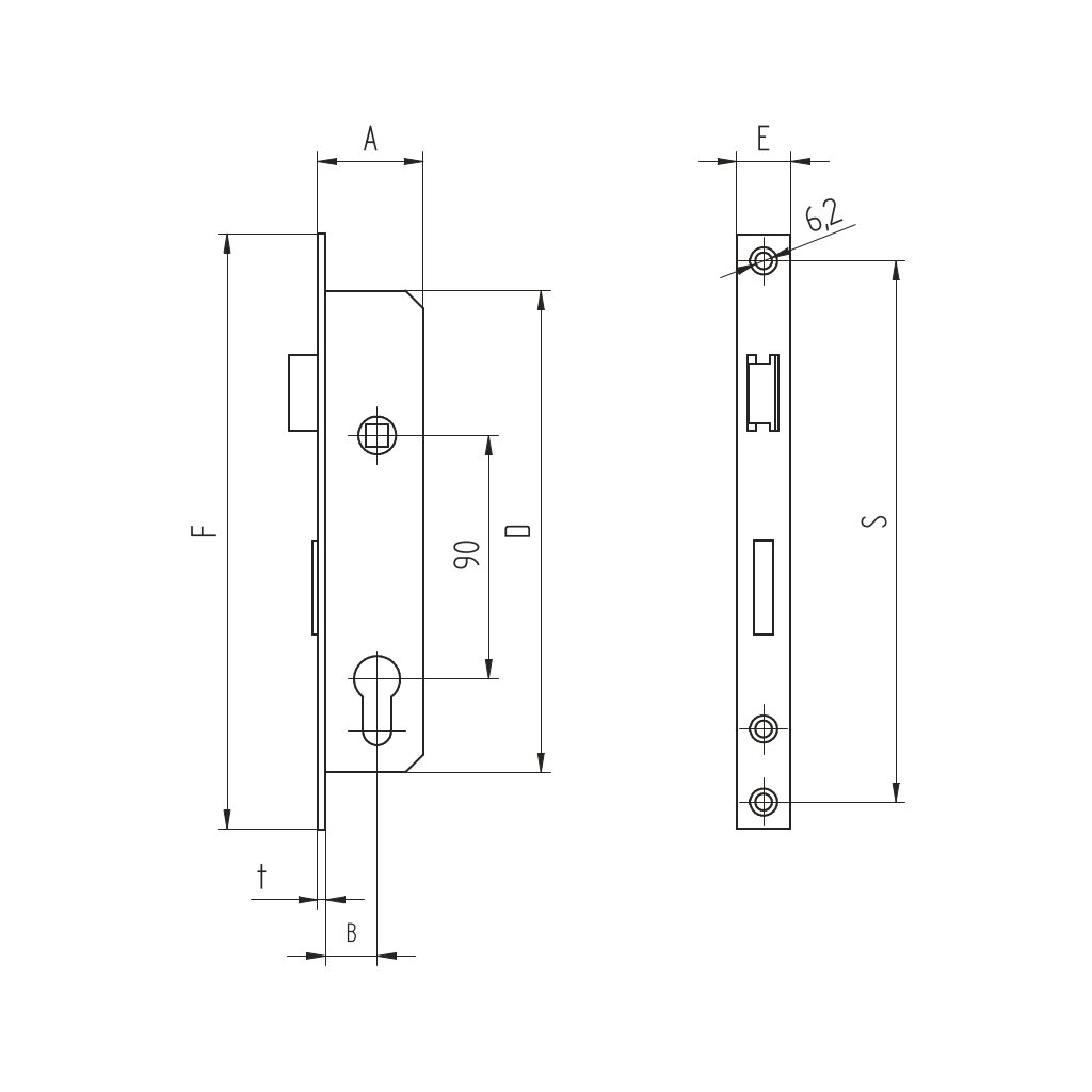 Zámok K411 pre cylin.vložku do JP profilu 40x40mm