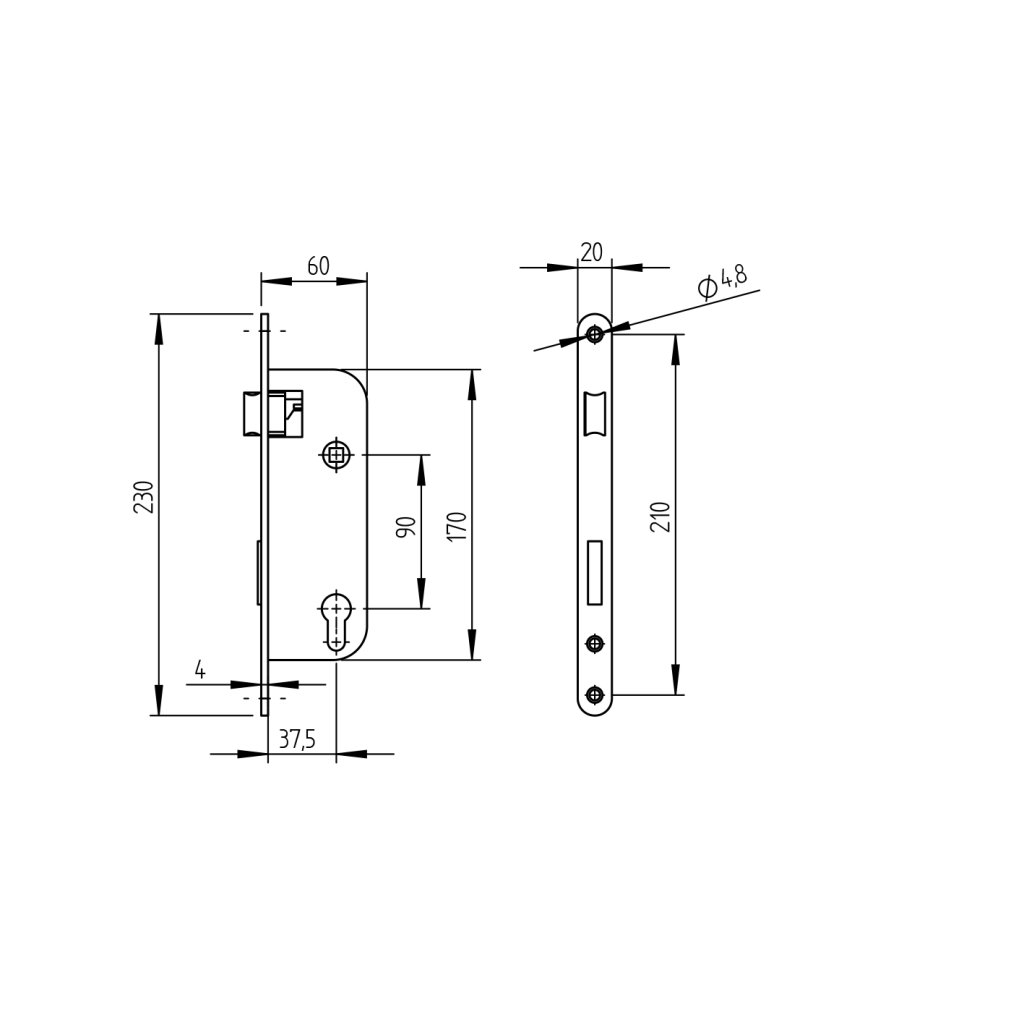 Zámok pre cylin.vložku do JP profilu 60x40mm