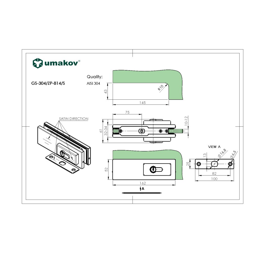Zámok pre sklenené dvere s vložkou AISI 304