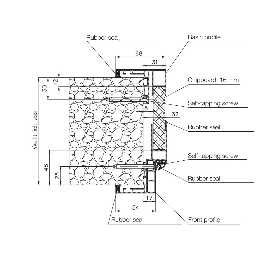 2300x2300x1300mm - pripravený na inštaláciu Sada obsahuje: 1. Zadný profil - 6 m 2. Predný profil - 6 m 3. Dištančný prvok, šírka 100 mm - 1,3 + 2,3 + 2,3 m 4. Rohové uholníky - 4x 5. Tesnenie dverí - 6 m 6. rohové rezy 45°Dodatočné parametre