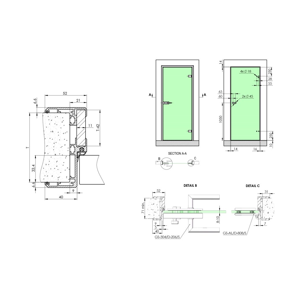 pripravený na inštaláciu Sada obsahuje: 1. Zadný profil 2. Predný profil 4. Rohové uholníky 5. Tesnenie dverí 6. rohové rezyDodatočné parametre