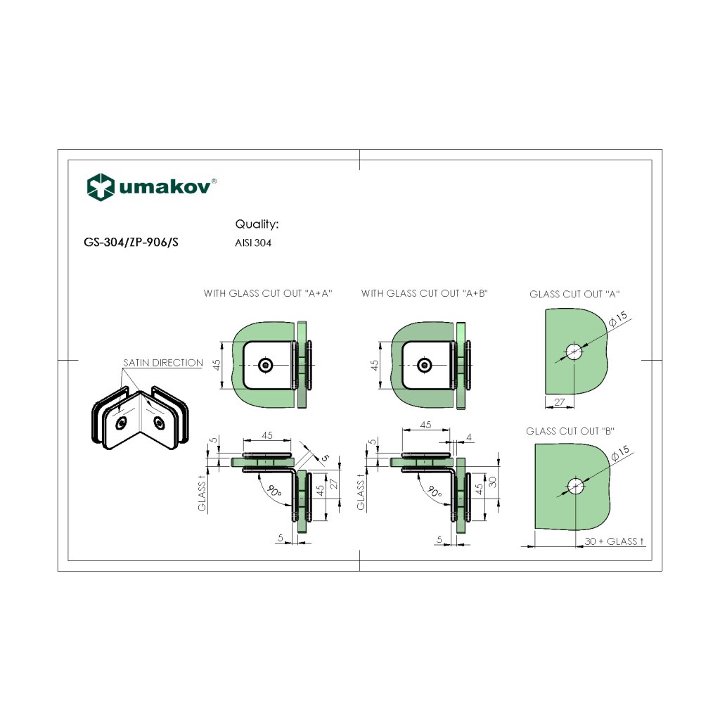 Zasklenie pevne - držiak skla, AISI 304, T 8-10 mm