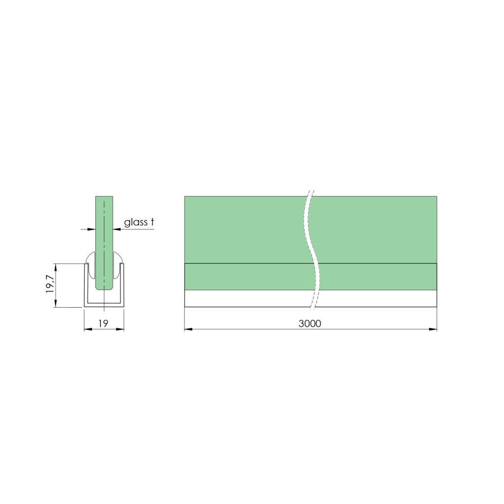 Zasklenie pevné - profil U 20x19x1.5mm