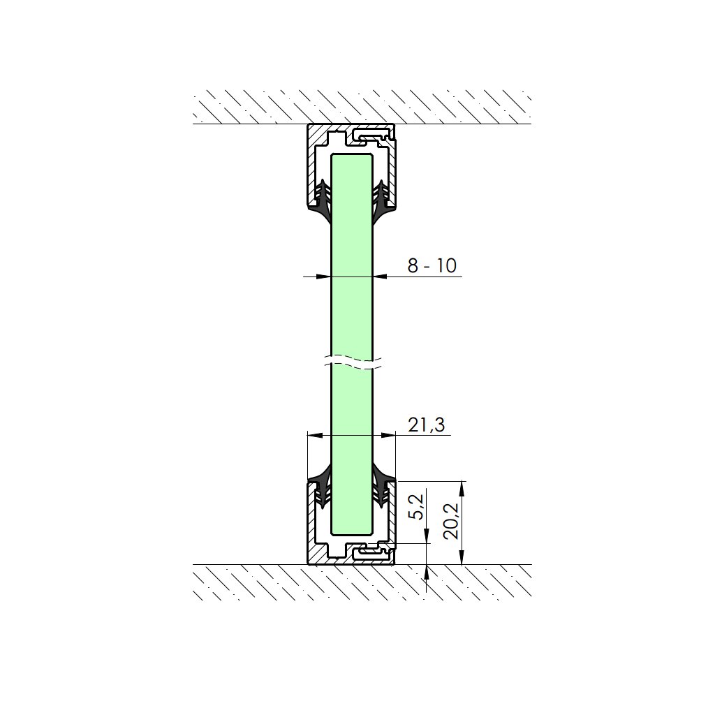 Hlinikový profil pre sklo hrúbky 8, 10 mm bez tesneniaDodatočné parametre