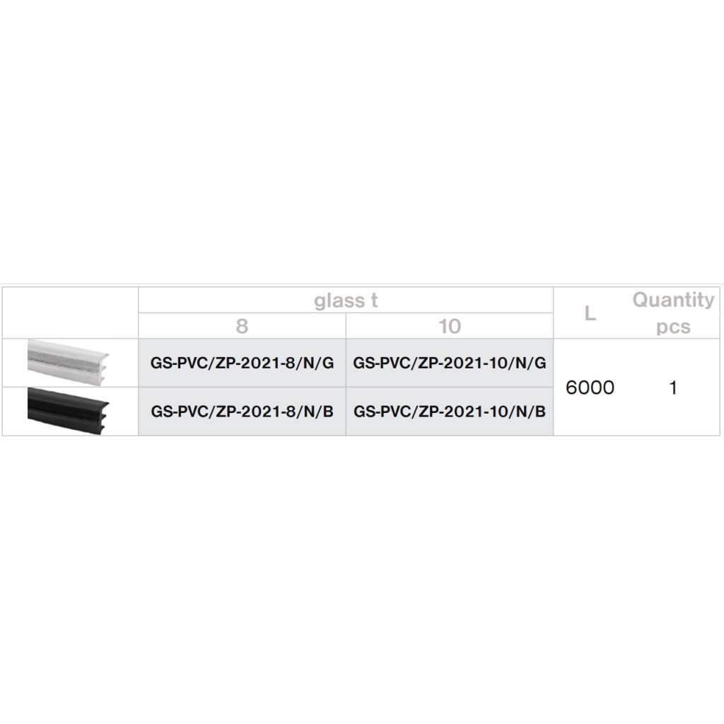 Hlinikový profil pre sklo hrúbky 8, 10 mm bez tesnenia. Dĺžka L=3000 mm.Dodatočné parametre