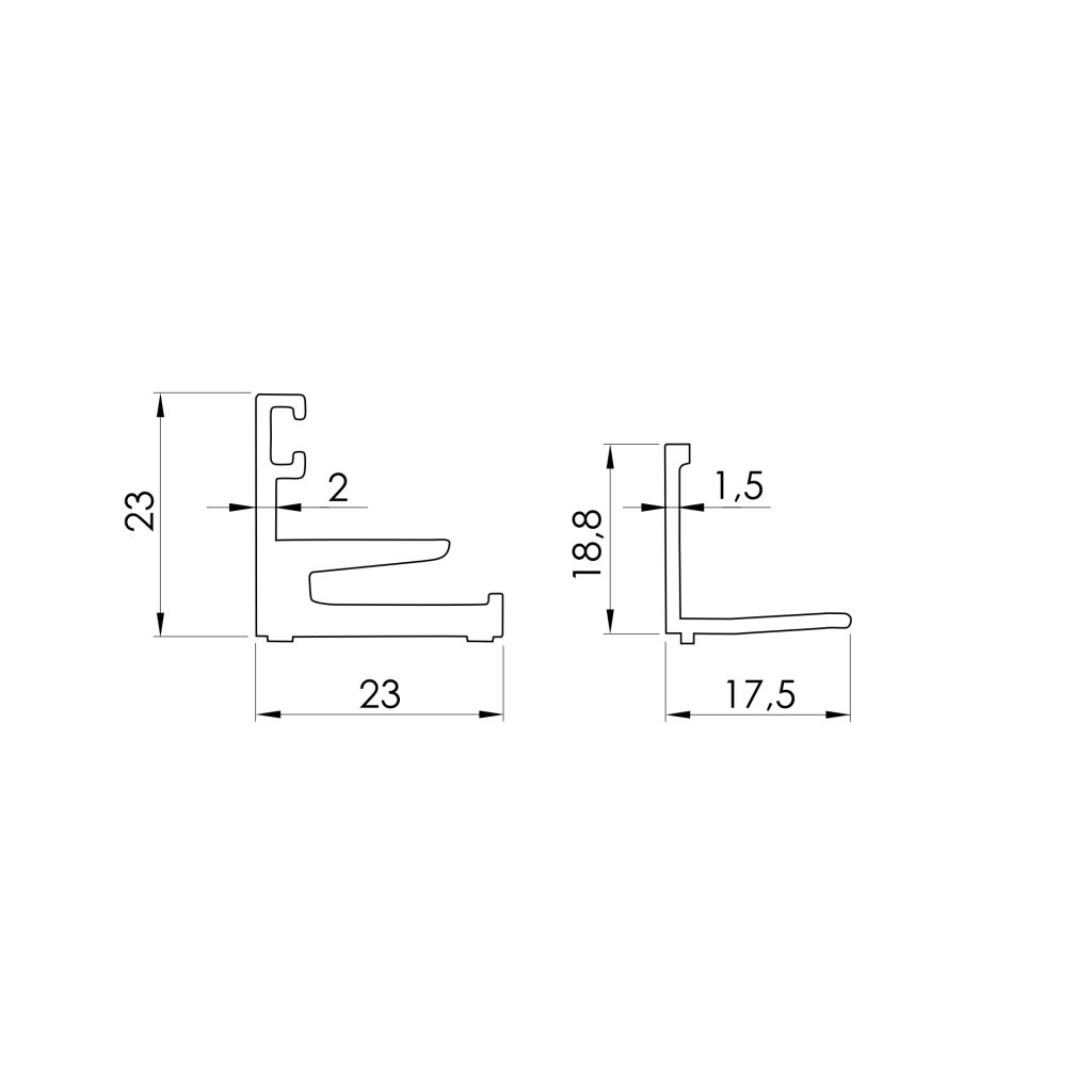 Hlinikový profil pre sklo hrúbky 8, 10 mm bez tesnenia. Dĺžka L=3000 mm.Dodatočné parametre