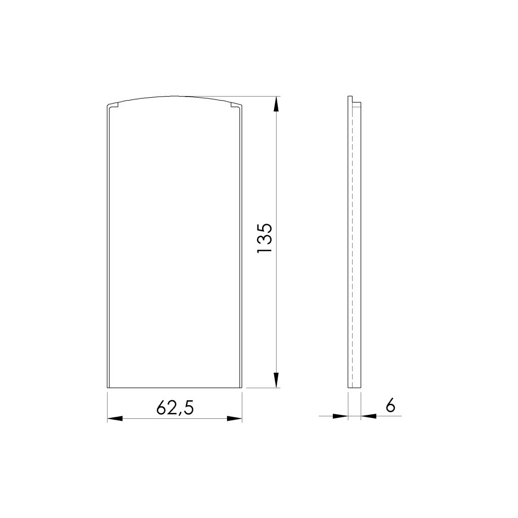 Záslepka pre profil AL/0004-PRO-2500-S-E, AL/0004-PRO-5000-S-E a AL/0004-PRO-6000-S-E. Povrchová úprava: Brus, Efekt: ELOXDodatočné parametre