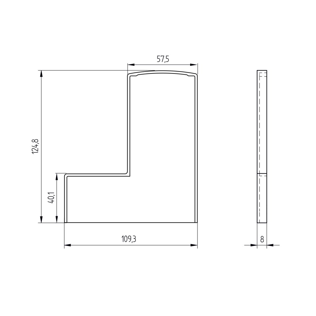 Záslepka (ľavá strana) pre profil AL/0006-ECO-5000-S-E, AL/0006-ECO-6000-S-E, AL/0006-ECO-2500-S-E a krycie lišty AL/0026-2500-S-E, AL/0026-5000-S-E a AL/0026-6000-S-E. Povrchová úprava: Brus, Efekt: ELOXDodatočné parametre
