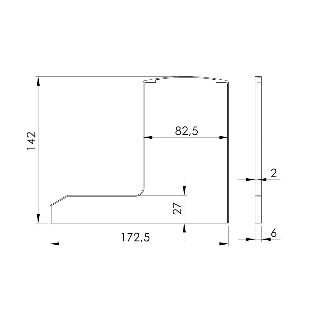 Záslepka pre profil AL/0018-2500-S-E, AL/0018-5000-S-E. Povrchová úprava: Brus, Efekt: ELOXDodatočné parametre