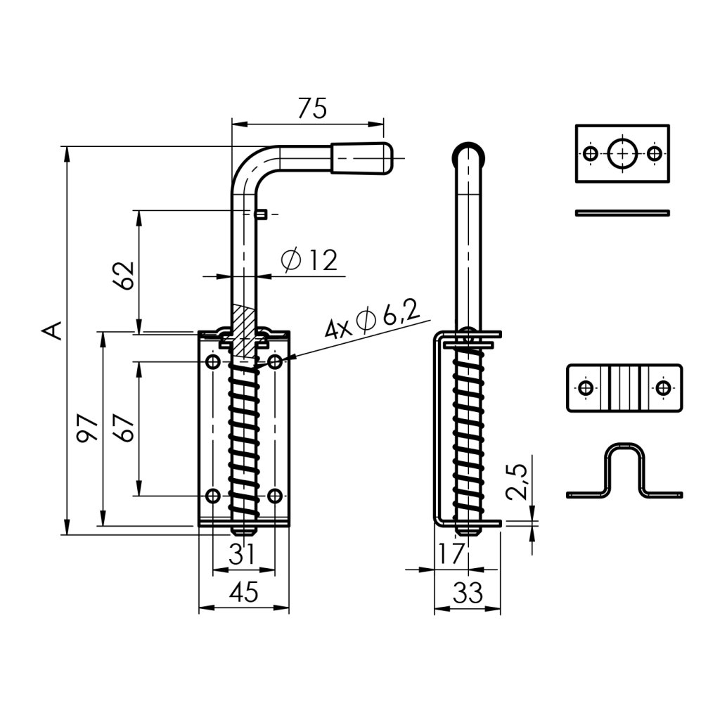 Zástrč brány s pružinou, Zn, L300mm