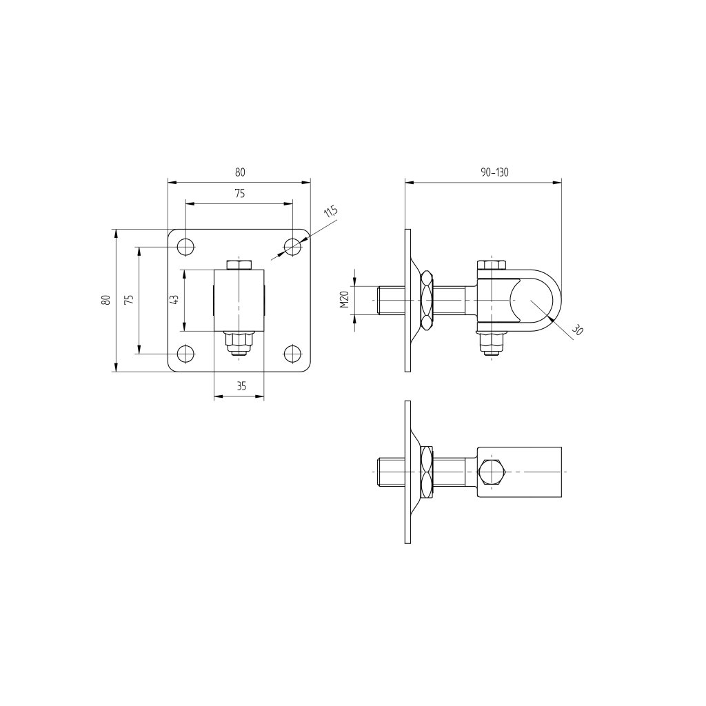 Záves nastav.osový s kotviacou prírubou M20-Zn, 80