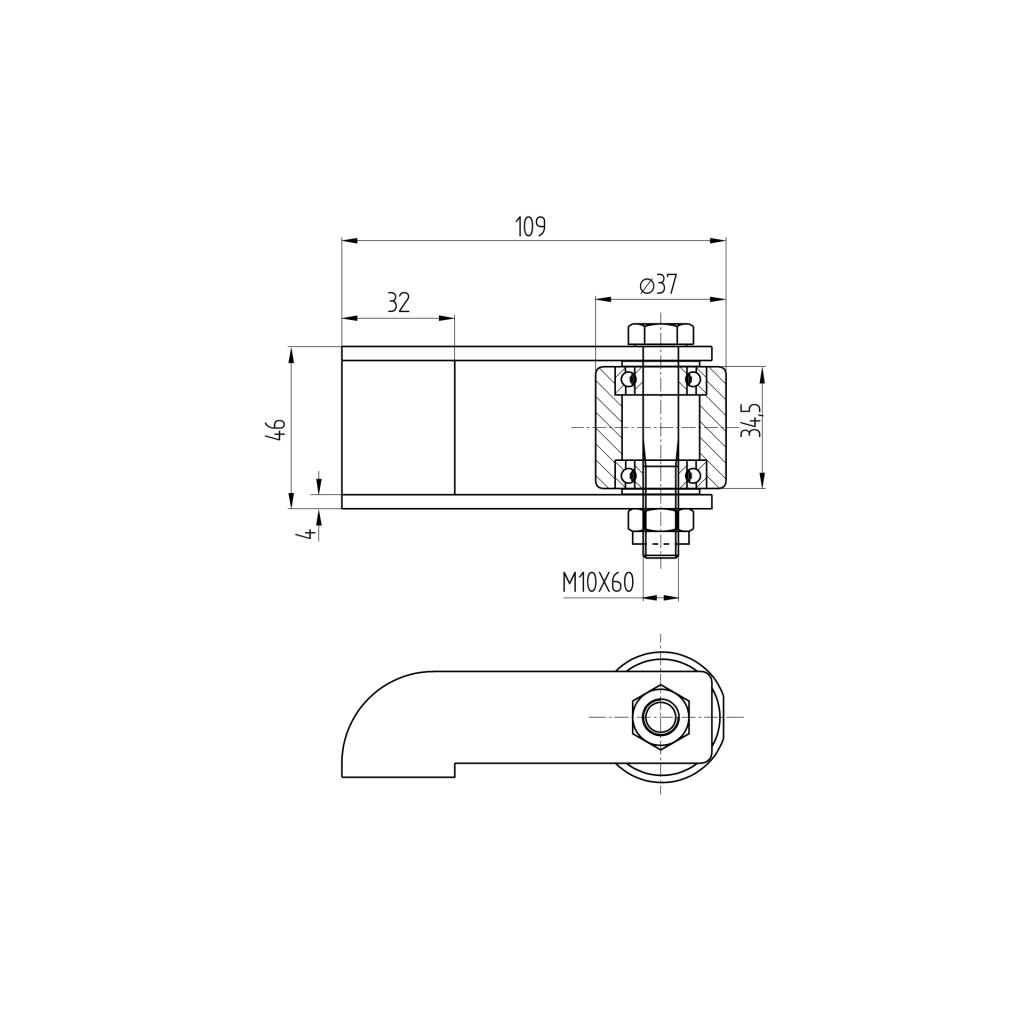 Záves pre oblúkovú posuvnú bránu na navarenie, s ložiskom