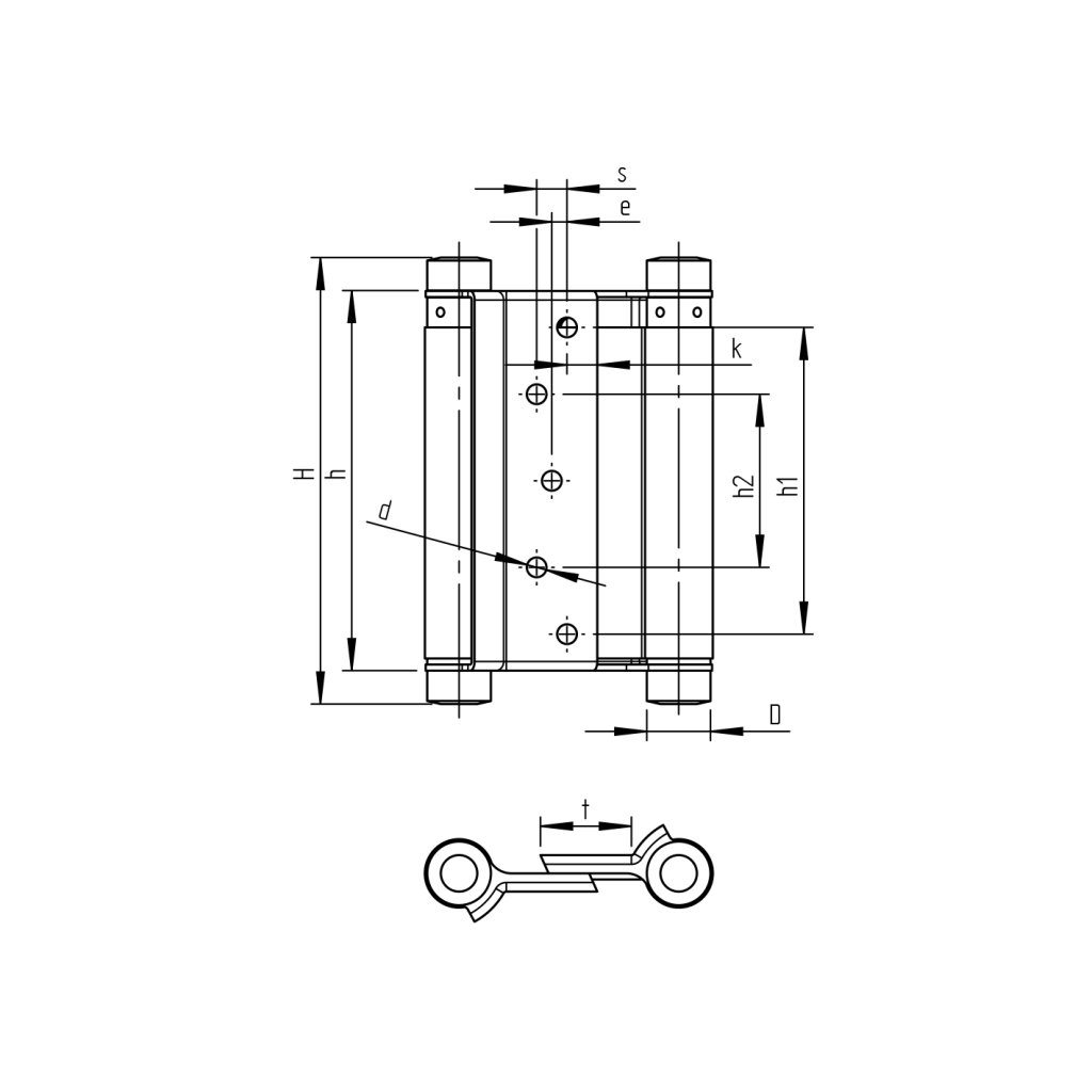 Samozatvárací pružinový záves, obojstranný, povrchová úprava - mosadz, výška 75mm. Možnosť nastavenia sily. Určené do interiéru. Odporúčanie pri 2-kusoch závesov: Hrubá dverí 18 - 25mm, šírka dverí do 600mm , váha dverí do 15kgDodatočné parametre